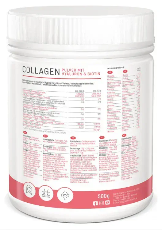 Objevte tajemství mladistvé pleti, silných vlasů a zdravých kloubů s WoldoHealth Kolagenem s kyselinou hyaluronovou a biotinem 500 g. Tento prémiový doplněk stravy kombinuje tři klíčové složky pro podporu vašeho těla zevnitř.